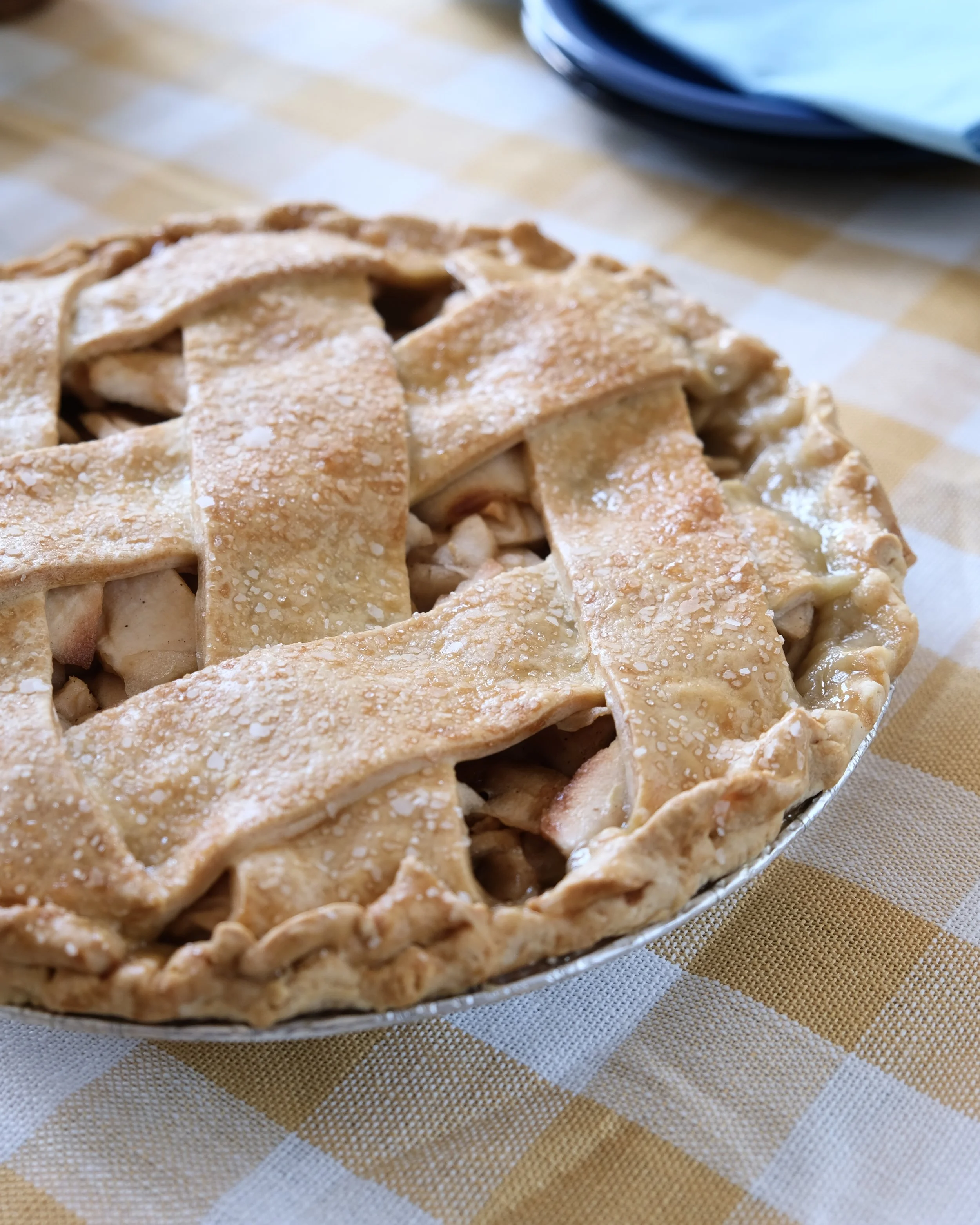 Filled with our classic blend of local apples and caramel, topped with a lattice crust and a sprinkle of sea salt.