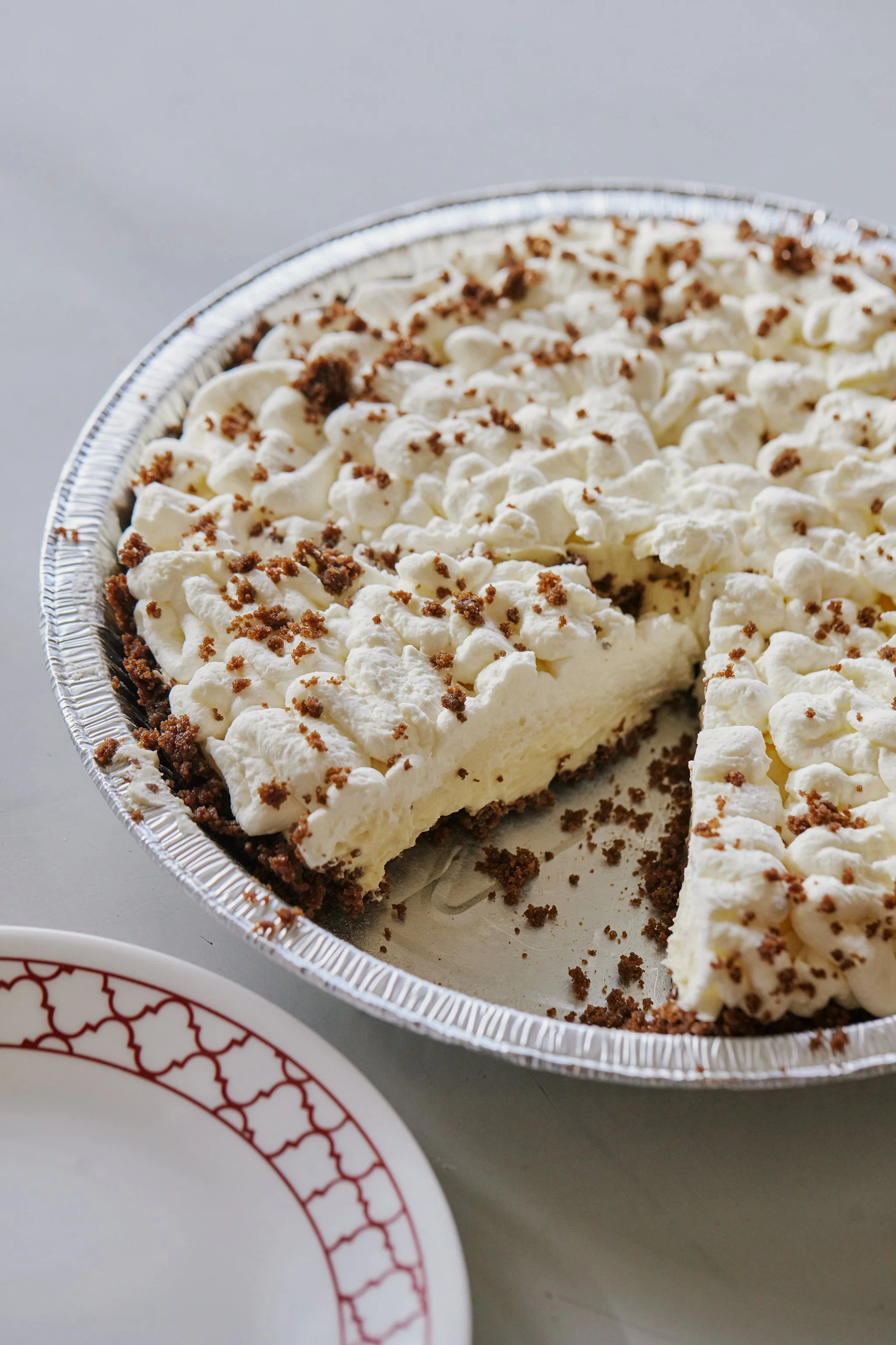 Eggnog cream filling inside a gingersnap crust and topped with fresh whipped cream. 'Tis the Season!